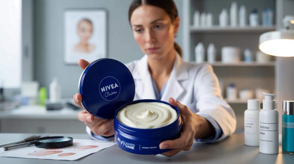 The first time I saw a dermatologist pull a Nivea blue tin out of her own bag, I did a double-take. Fluorescent light, cold consultation room, shelf full of cutting-edge serums… and this vintage-looking pot your grandmother probably had on her nightstand. She dipped a clean spatula in the thick white cream, spread a tiny amount on the back of my hand, and simply said: “Feel that occlusion?”