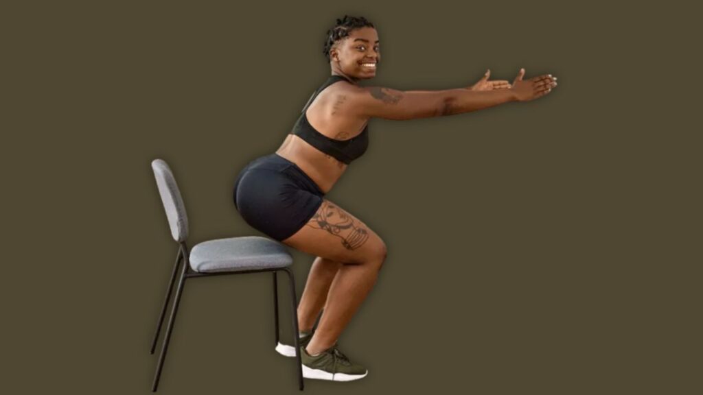 Focus on moving with control instead of dropping down heavily. You can use the armrests if you need them but work toward standing up without arm support over time. This exercise strengthens your quadriceps muscles that you use for daily activities like getting up from a chair or toilet.