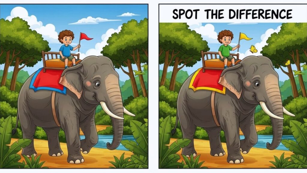Spot-the-difference puzzles continue to capture the attention of both kids and adults. At first glance, two images seem almost identical, but subtle changes are hidden throughout. The excitement grows when you are challenged to spot these differences quickly. In this puzzle, you are presented with two colorful illustrations of a boy riding an elephant outdoors. Your goal is to identify three small differences within just 15 seconds. While the images look simple, the time constraint makes this challenge particularly tricky and fun.